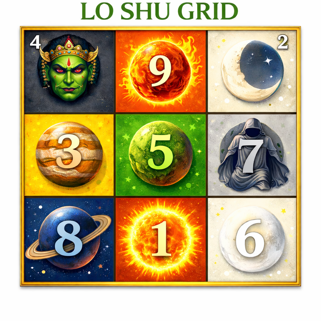 Legend speaks of Emperor Yu witnessing a mystical turtle from the Luo River, carrying a sacred numeric code. This became the Lo Shu Grid — the origin of numerological balance.