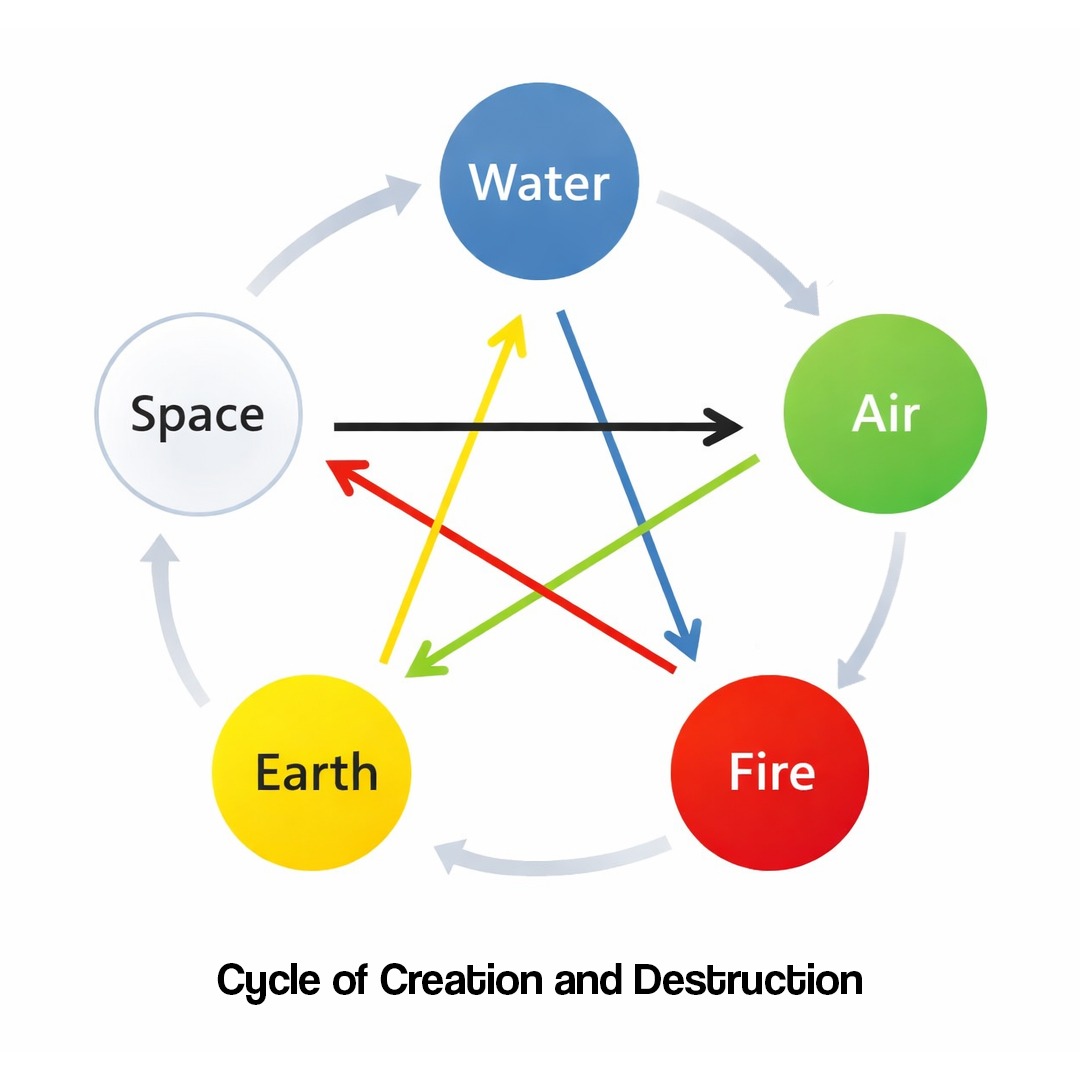 The five Vastu elements (Pancha Tattva) are Earth, Water, Fire, Air, and Space. In Vastu Shastra, balancing these elements through proper direction and design is believed to support health, stability, and positive energy in a space.