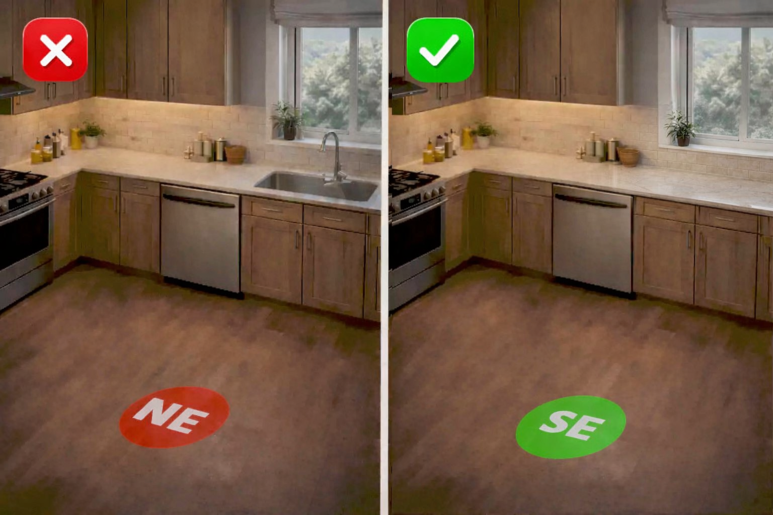 - Ideal kitchen zone for prosperity and health